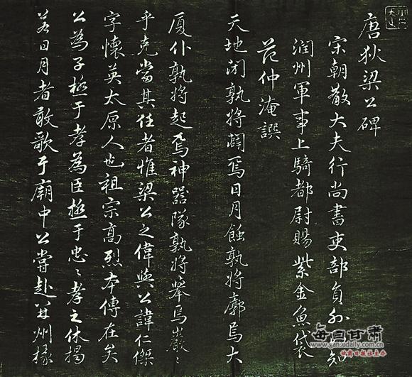 范仲淹撰寫(xiě)的碑文分為四部分:第一部分贊揚(yáng)了狄仁杰的不凡政績(jī);第二部分從十五個(gè)方面列舉了狄仁杰的忠與孝的事實(shí),并在每一二件事實(shí)后面進(jìn)行了極簡(jiǎn)短的評(píng)議;第三部分作了總結(jié);第四部分為碑文的銘文。碑文開(kāi)頭大氣磅礴,先聲奪人:“天地閉,孰將辟焉?日月蝕,孰將廓焉?大廈仆,孰將起焉?神器墜,孰將舉焉?”一連四個(gè)排比設(shè)問(wèn),高屋建瓴。接著他自問(wèn)自答:“巖巖乎!克當(dāng)其任者,惟梁公之偉歟?!痹诒闹?,范仲淹敘述了狄仁杰,不畏強(qiáng)權(quán)的高大形象,栩栩如生的刻畫(huà)出了這個(gè)被武則天譽(yù)為“豈朕之臣,社稷之臣也”的錚錚鐵骨。范仲淹在碑文中還連舉史上杰出人物與狄仁杰對(duì)比:“商有三仁,弗救其滅;漢有四皓,正于未奪。嗚呼!武暴如火,李寒如灰,何心不隨,何力可回!我公哀傷,拯天之亡,逆長(zhǎng)風(fēng)而孤鶱,訴大川以獨(dú)航。金可革,公不可革,孰為乎剛!地可動(dòng),公不可動(dòng),孰為乎方!一朝感通,群陰披攘。天子既臣而皇,天下既周而唐,七世發(fā)靈,萬(wàn)年垂光。噫!非天下之至誠(chéng)其孰能當(dāng)!”整篇行文夾敘夾議,褒貶精到,使后人讀之油然而生敬意。