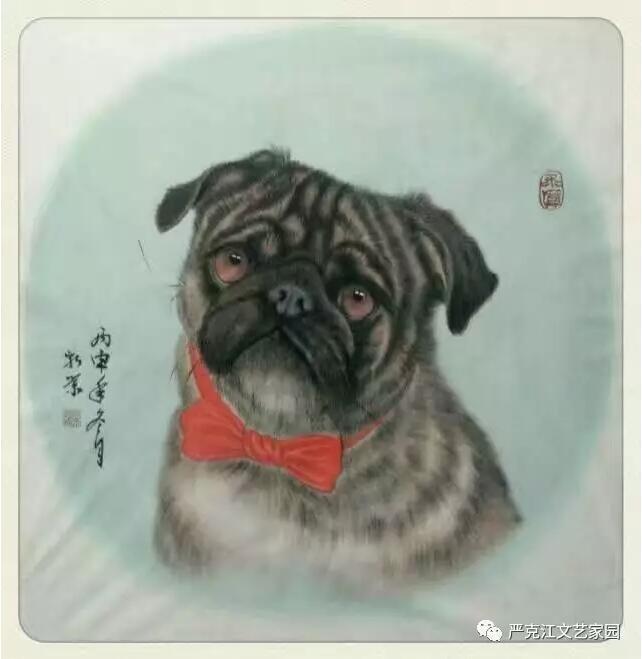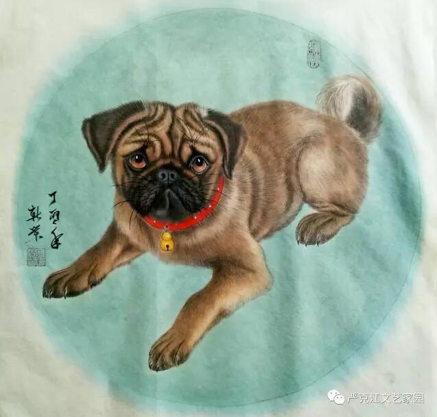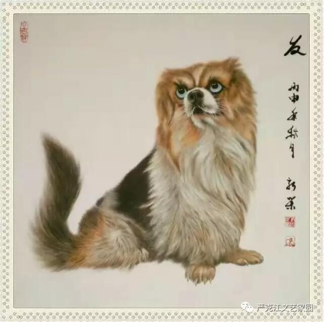 犬是最通人性的動(dòng)物,亦是人類患難與共的朋友,它對(duì)人類特別忠誠(chéng),因而具有忠貞不渝的意義。“牧羊犬三千里尋主”,“義犬救主”等例子很好地說(shuō)明了這一點(diǎn)。常言道“貓來(lái)窮,狗來(lái)富?!彼匀嘤型?cái)?shù)脑⒁?,“自古牧民惜此犬,饑腸食雪不離羊?!边@也是對(duì)犬忠誠(chéng)的真實(shí)寫照。也是民間藝術(shù)喻意象征的特色。“犬盼人歸迎陌上,搖頭擺尾蹭懷中。”把犬對(duì)主人的那份情感和依賴,描寫的淋漓盡致。