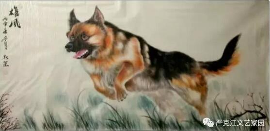 馬新榮這些年一直沉浸在藝術(shù)的創(chuàng)作之中,沉浸在精益求精的境界里,題材上,對(duì)牧羊犬的偏愛(ài),以近癡迷狀態(tài)。他以最飽滿的熱情從生活中汲取營(yíng)養(yǎng),以敏銳的觀察力充實(shí)作品的內(nèi)涵,藝術(shù)上,虛實(shí)相生,筆簡(jiǎn)意繁,亦是不斷的探索與創(chuàng)新??芍^是蘸墨含情,調(diào)色用心。在淡化線條中深化意境,在突出形態(tài)的同時(shí)凸現(xiàn)神韻。有句行話說(shuō)得好:“作畫妙在似與不似之間,太似為媚俗,不似為欺。”在這一點(diǎn)和造型設(shè)計(jì)上,馬新榮也把控的恰到好處,做到了既不流于媚俗,也不狂怪欺世。