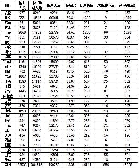 2018年國考各省報(bào)考情況一覽表