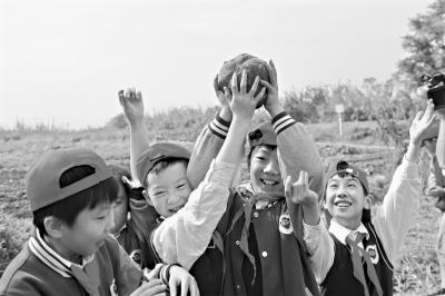 挖過紅薯,坐在田埂上吃過午飯,孩子們還分組扎稻草人、在一畝地大的畫布上作畫、用小鐮刀收割稻子,聽當(dāng)?shù)剞r(nóng)民介紹稻子的種植方法。女生卜嘉怡從稻穗上摘下幾粒稻谷,小心翼翼剝開,露出晶瑩的米粒?!拔覀兺肜锏拿恳活w米飯,都是經(jīng)歷了播種、生長、收割這個過程”,卜嘉怡說,“參與勞動以后,我才真的知道什么叫‘粒粒皆辛苦’,以后我不能浪費(fèi)糧食了?!?/p>