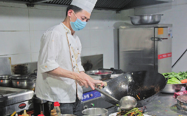 廚師是很難有假期的,當(dāng)人們忙著回家團(tuán)圓,忙著共聚一堂享受美味佳肴時(shí),他都在后廚熱火朝天地顛勺炒菜。從十六七歲開始學(xué)徒到獨(dú)當(dāng)一面的主廚,十幾年的廚師生涯,也讓他習(xí)慣了這樣的忙碌,習(xí)慣了不能回家過節(jié)。