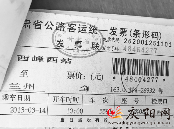 “營改增”前,西峰汽車西站向乘客提供的、由地稅部門開具的甘肅省公路客運(yùn)統(tǒng)一發(fā)票。