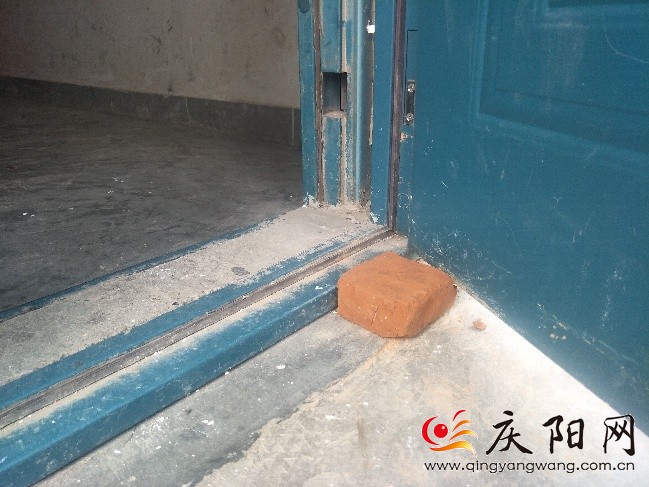 小區(qū)單元門被人用磚塊擋住不讓其關閉。