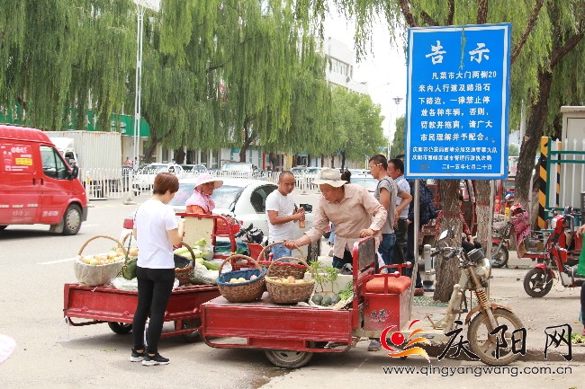 西峰區(qū)天禾蔬菜市場(chǎng)外幾名流動(dòng)商販占道經(jīng)營(yíng)