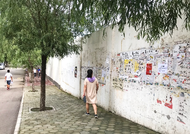隴東學(xué)院校園一角的墻壁上充斥著網(wǎng)貸小廣告