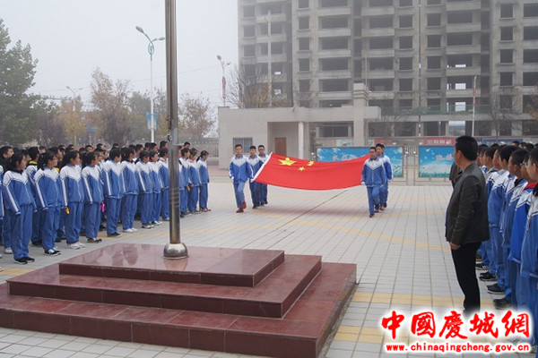 儀式由教務(wù)主任主持,共有四項議程。首先組織國旗隊隊員升旗,全體師生齊唱國歌、行注目禮;第二項,宣讀學(xué)?!蛾P(guān)于授予曹瑞祥、樊卓欣、朱阿嬌“法制勇敢好少年”的表彰決定》《關(guān)于向“法制勇敢好少年”曹瑞樣、樊卓欣、朱阿嬌學(xué)習(xí)的倡議書》及慶城縣公安局對三名同學(xué)的表揚信;第三項,由八年級學(xué)生代表陳柯同學(xué)進行題為《學(xué)習(xí),我們的職責(zé)》的國旗下演講;最后,學(xué)校負(fù)責(zé)人做了總結(jié)講話,要求全體老師要根據(jù)縣局下發(fā)的《慶城縣2018年秋季初中期中考試安排》,安排好課程進度,組織好考前復(fù)習(xí),同時,寫好個人政治學(xué)習(xí)筆記和業(yè)務(wù)學(xué)習(xí)筆記,強化師德師風(fēng)建設(shè),爭做“四有”好老師。