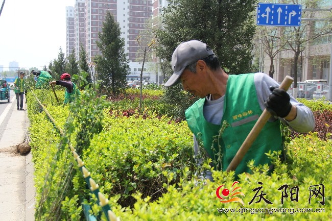4月19日中午,記者在西峰區(qū)和諧廣場(chǎng)附近看到,十多名園林工人正頂著烈日在馬路中間的綠化隔離帶里栽種綠植。園林工人張師傅告訴記者,“春天到了,我們給綠化帶里增添一些新品種的綠植,不僅能美化市容,還能為城市增添更多的綠色?!?/p>