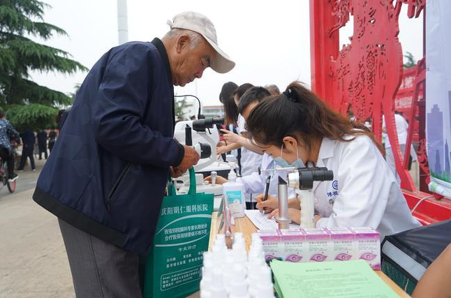 活動現(xiàn)場,眼科醫(yī)務工作者向市民宣傳白內(nèi)障、青少年近視預防等眼科疾病的醫(yī)學常識,開展免費視力測試、眼底病變儀器檢查,并向市民免費發(fā)放眼部護理藥品、宣傳手冊。