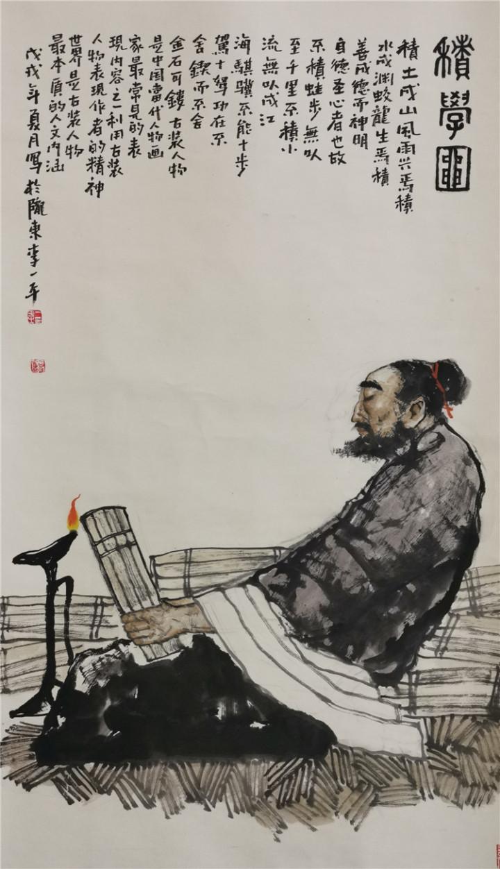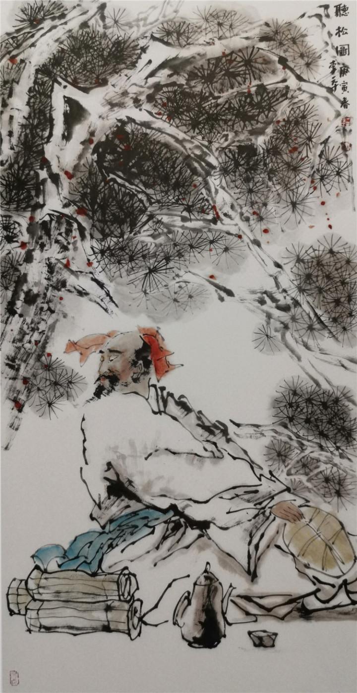 ??????? 中國畫中的人物畫歷史悠久。隨著社會(huì)的進(jìn)步和中國傳統(tǒng)文化的不斷發(fā)展變化,人們對(duì)繪畫認(rèn)知和追求的不斷提高,中國人物畫的理論和實(shí)踐日趨完善。特別是現(xiàn)代人物畫在繼承傳統(tǒng)的基礎(chǔ)上,與現(xiàn)代人們的生活實(shí)際緊密結(jié)合起來,突出表現(xiàn)現(xiàn)代人們的精神風(fēng)貌與社會(huì)生活現(xiàn)狀。但是,從繪畫理論層面來看,仍然與南朝謝赫關(guān)于中國畫的“六法論”一脈相承?!傲ā钡幕緝?nèi)容是氣韻生動(dòng)、經(jīng)營(yíng)位置、骨法用筆、應(yīng)物象形、隨宜類賦彩、傳移模寫。古人評(píng)價(jià)繪畫水平高低,主要依據(jù)這六法,也就是這六條品評(píng)標(biāo)準(zhǔn)。當(dāng)代人物畫的評(píng)價(jià)體系,也超不出六法的基本范疇。例如,我們欣賞一件人物畫作品,首先要從整體效果入手,就是要求畫面氣韻生動(dòng)、視覺沖擊力要強(qiáng)。它是一個(gè)有機(jī)整體,每個(gè)局部互相牽連,相互照應(yīng)。欣賞一件好的美術(shù)作品,一看讓人眼前一亮,第一眼很打動(dòng)人,活靈活現(xiàn),生動(dòng)傳神,這件作品就是一件好作品。所以一件作品的評(píng)價(jià),氣韻生動(dòng)是第一位的。其次,好的作品還要耐看,再看它的構(gòu)圖章法布局,也就是六法中的經(jīng)營(yíng)位置,要求畫面主題突出,布局合理,點(diǎn)線面組織得當(dāng),黑白灰調(diào)子和諧。畫面的節(jié)奏感、韻律感都處理的得當(dāng)。再深入地看,看畫面的筆墨效果,注重筆墨的功力和線條的質(zhì)量,就是強(qiáng)調(diào)骨法用筆。至于應(yīng)物象形,傳移模寫、隨類賦彩,也是每件成功作品必不可少的內(nèi)容。就是要看作品抓形準(zhǔn)確、色彩合理,有生活基礎(chǔ),構(gòu)成一個(gè)有機(jī)的整體。