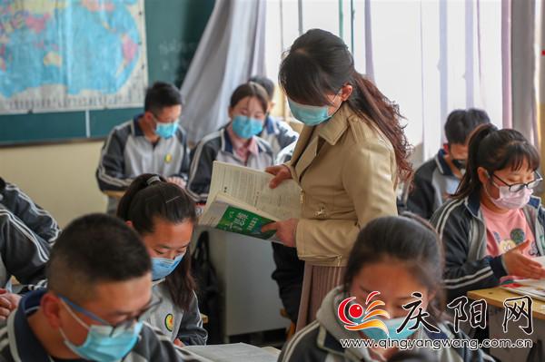 慶陽四中一老師給學(xué)生講解題目。記者陳飛 攝