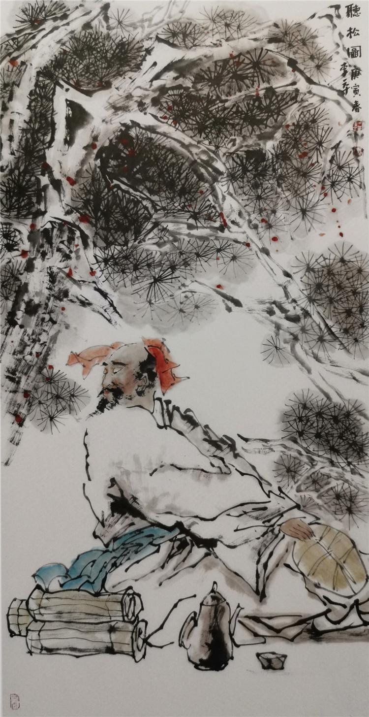 中國(guó)畫(huà)中的人物畫(huà)歷史悠久。隨著社會(huì)的進(jìn)步和中國(guó)傳統(tǒng)文化的不斷發(fā)展變化,人們對(duì)繪畫(huà)認(rèn)知和追求的不斷提高,中國(guó)人物畫(huà)的理論和實(shí)踐日趨完善。特別是現(xiàn)代人物畫(huà)在繼承傳統(tǒng)的基礎(chǔ)上,與現(xiàn)代人們的生活實(shí)際緊密結(jié)合起來(lái),突出表現(xiàn)現(xiàn)代人們的精神風(fēng)貌與社會(huì)生活現(xiàn)狀。但是,從繪畫(huà)理論層面來(lái)看,仍然與南朝謝赫關(guān)于中國(guó)畫(huà)的“六法論”一脈相承?!傲ā钡幕緝?nèi)容是氣韻生動(dòng)、經(jīng)營(yíng)位置、骨法用筆、應(yīng)物象形、隨宜類(lèi)賦彩、傳移模寫(xiě)。古人評(píng)價(jià)繪畫(huà)水平高低,主要依據(jù)這六法,也就是這六條品評(píng)標(biāo)準(zhǔn)。當(dāng)代人物畫(huà)的評(píng)價(jià)體系,也超不出六法的基本范疇。例如,我們欣賞一件人物畫(huà)作品,首先要從整體效果入手,就是要求畫(huà)面氣韻生動(dòng)、視覺(jué)沖擊力要強(qiáng)。它是一個(gè)有機(jī)整體,每個(gè)局部互相牽連,相互照應(yīng)。欣賞一件好的美術(shù)作品,一看讓人眼前一亮,第一眼很打動(dòng)人,活靈活現(xiàn),生動(dòng)傳神,這件作品就是一件好作品。所以一件作品的評(píng)價(jià),氣韻生動(dòng)是第一位的。其次,好的作品還要耐看,再看它的構(gòu)圖章法布局,也就是六法中的經(jīng)營(yíng)位置,要求畫(huà)面主題突出,布局合理,點(diǎn)線面組織得當(dāng),黑白灰調(diào)子和諧。畫(huà)面的節(jié)奏感、韻律感都處理的得當(dāng)。再深入地看,看畫(huà)面的筆墨效果,注重筆墨的功力和線條的質(zhì)量,就是強(qiáng)調(diào)骨法用筆。至于應(yīng)物象形,傳移模寫(xiě)、隨類(lèi)賦彩,也是每件成功作品必不可少的內(nèi)容。就是要看作品抓形準(zhǔn)確、色彩合理,有生活基礎(chǔ),構(gòu)成一個(gè)有機(jī)的整體。
