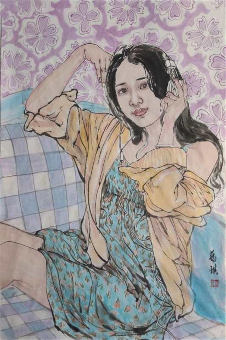 初到創(chuàng)研班的時(shí)候,在諸多學(xué)員中,葛琪的畫并不出色。經(jīng)過一段研習(xí)以后,葛琪繪畫創(chuàng)作進(jìn)步明顯,面貌一新。她在繼承傳統(tǒng)工筆畫語言結(jié)構(gòu)的基礎(chǔ)上,融入西方造型技法,形成了一些自己的現(xiàn)代審美和特有的語言形式。在創(chuàng)作過程中,她對(duì)線條有著較強(qiáng)的把控能力,在對(duì)線條的運(yùn)用上,既得傳統(tǒng)文化之精髓,也富于創(chuàng)新變化,風(fēng)格逐漸形成。特別是她的工筆人物畫,已成為與她同時(shí)來學(xué)習(xí)的學(xué)員中創(chuàng)作進(jìn)步最顯著的一位。