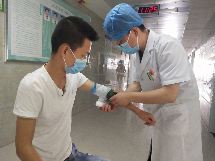 許志強正在給患者做中藥擦涂治療。實習(xí)生唐曉慶 攝