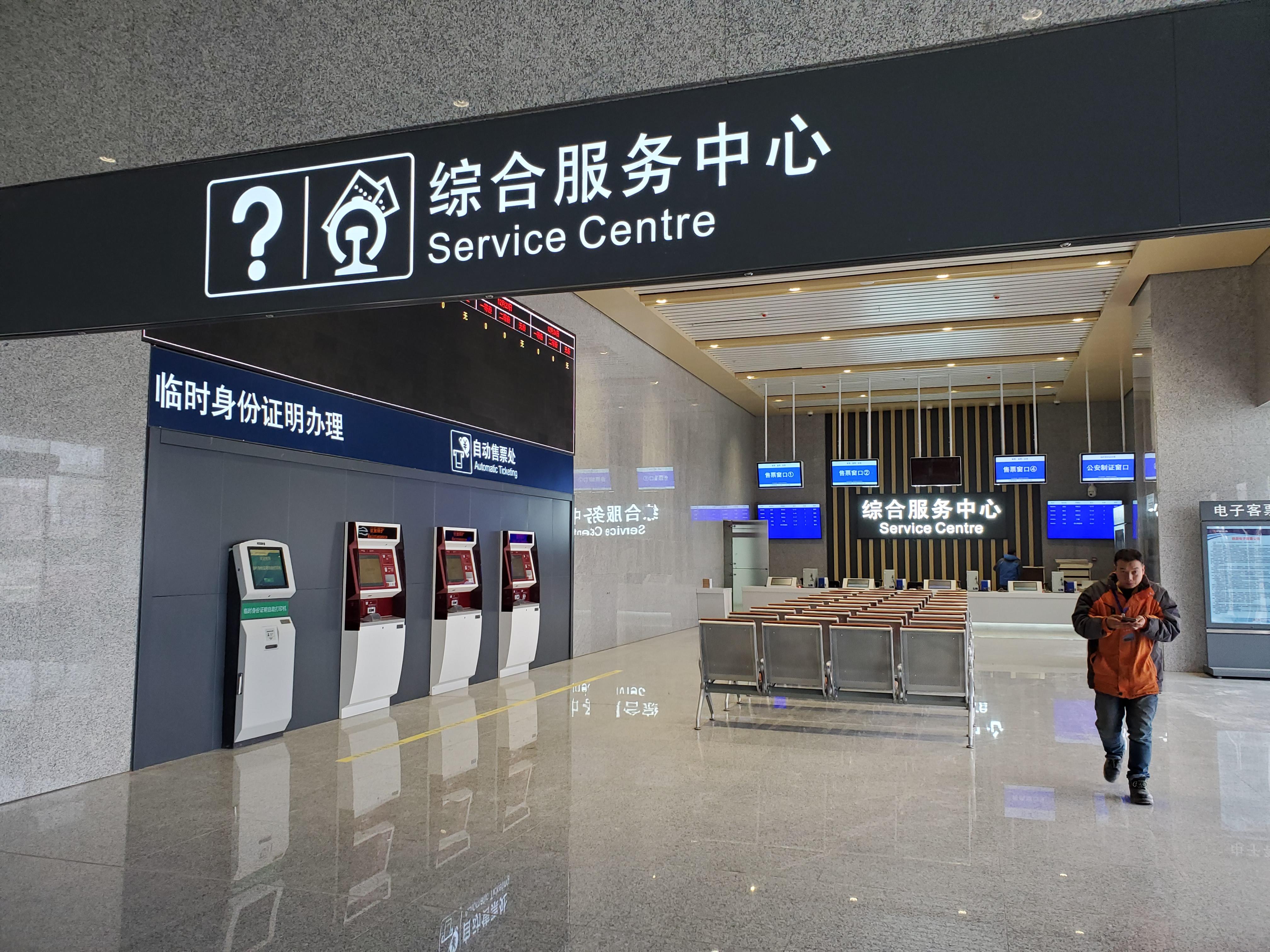 ??? 據(jù)慶陽站副站長樊岳介紹,慶陽站建筑結(jié)構(gòu)為中間兩層、部分四層,站房面積為14996平方米?!败囌臼状尾捎谩鄯弦弧Ⅱ?yàn)檢合一’的運(yùn)營模式,旅客進(jìn)入候車廳不再進(jìn)行實(shí)名驗(yàn)證手續(xù),進(jìn)站安檢后可直接進(jìn)入候車大廳,可通過位于候車大廳東北角的綜合服務(wù)中心人工窗口、自動(dòng)售票機(jī)辦理售票、退票、改簽、乘意險(xiǎn)等業(yè)務(wù)?!?/p>