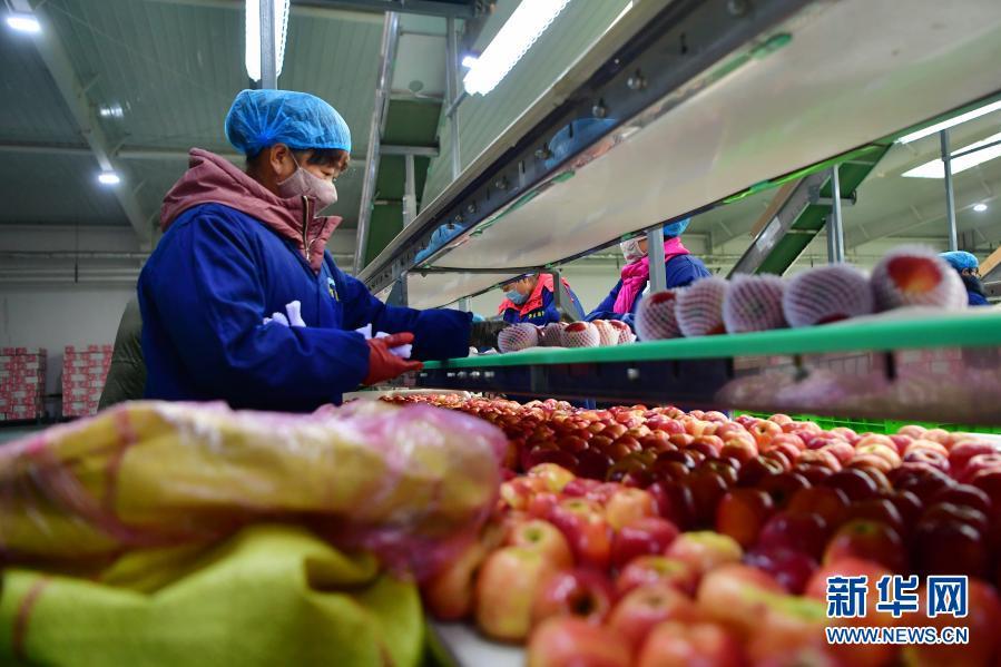 工作人員在甘肅省慶陽(yáng)市寧縣慶陽(yáng)海越冷鏈基地分揀蘋果(12月15日攝)。新華社記者 陳斌 攝