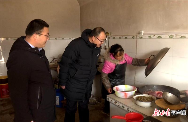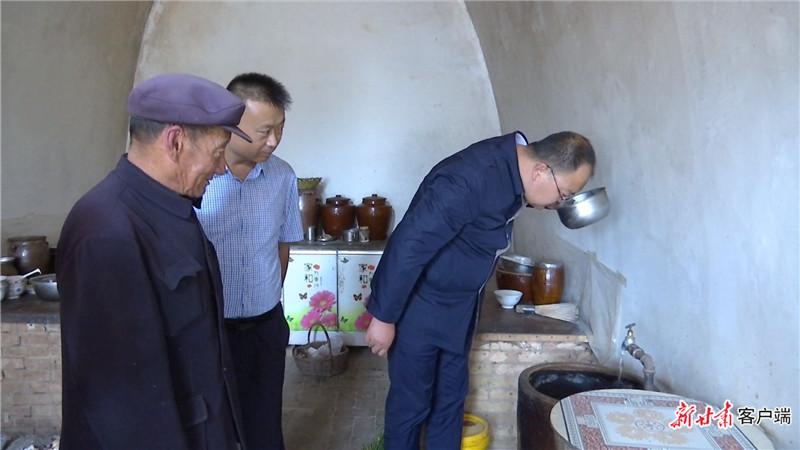 2019年1月25日,邱軍(右一)走訪貧困戶,察看安全飲水情況。