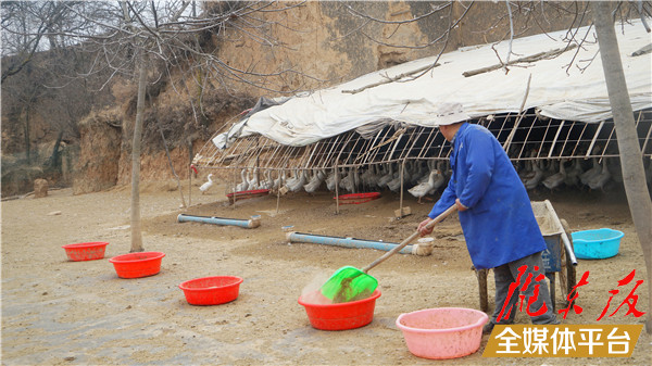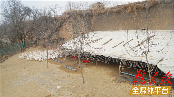 2019年,在幫扶干部的鼓勵下,岳小紅蓋起占地200平方米的保溫棚,以一只14元的價格,從四川引進500只鵝苗,重新利用起家里廢棄的4個窯洞,開始發(fā)展大鵝養(yǎng)殖。