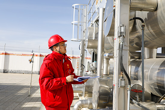 圖為隴東天然氣項目部試采作業(yè)區(qū)慶1集氣站的工作人員進(jìn)行日常巡檢。