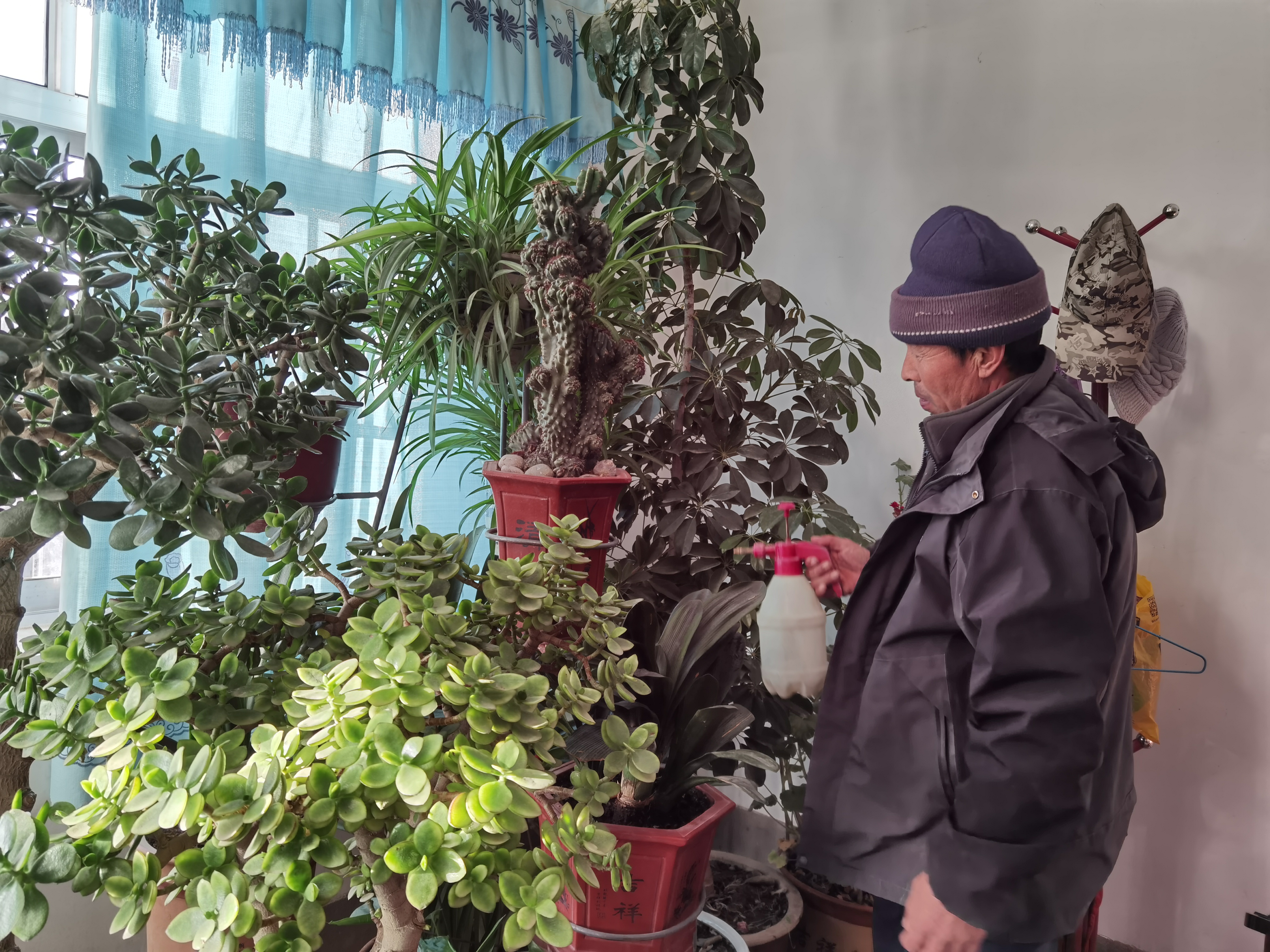 此外,他還打造了一處“秘密花園”,房間里擺放著數(shù)十盆花,1米多高的金錢樹、四季常青的鵝掌柴、剛出花苞的君子蘭、枝繁葉茂的吊籃、紅花點綴的繡球,一派生機勃勃。