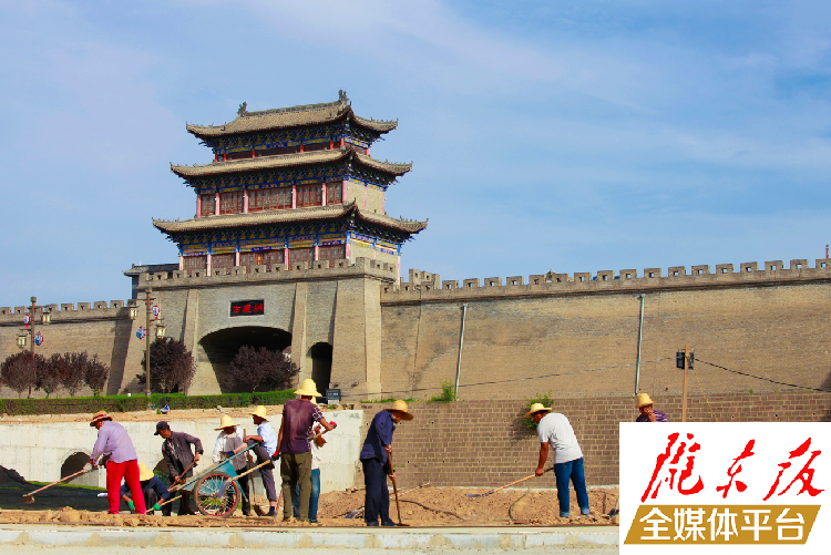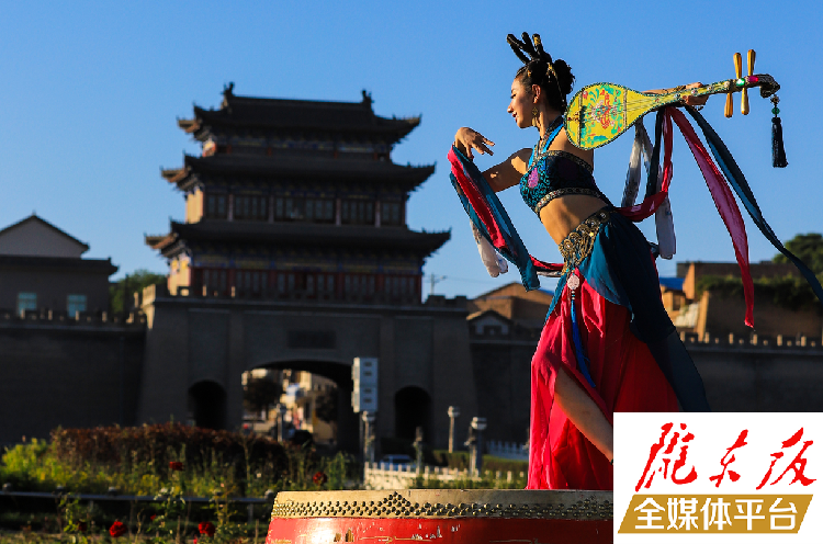 “飛天舞動絲路”拍攝組走進慶城縣,南門也成了網(wǎng)紅打卡地(2021年9月12日攝)。