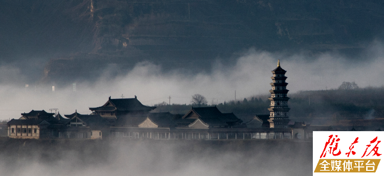 慶城縣南門夢陽書畫院,云霧繚繞,宛若仙境(2020年11月18日攝)。