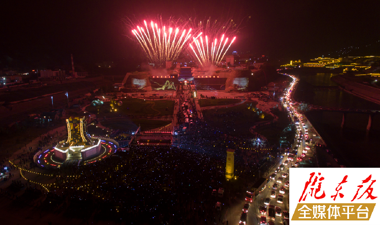 慶城縣第一屆旅游文化周開幕,南門焰火綻放(2017年9月27日攝)。