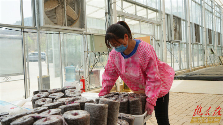 工人們正在搬運(yùn)菌棒。 路世玲攝