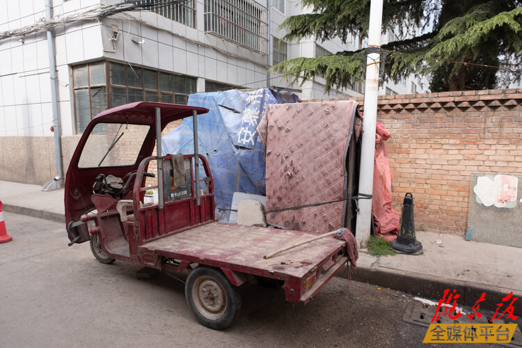 ↑安居巷,三輪車??吭诼愤叄诵械郎想s物堆積。