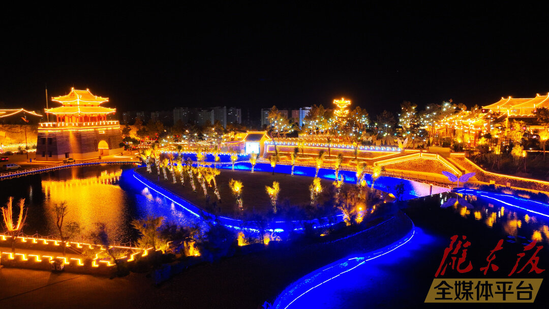夜幕降臨,華燈初上,環(huán)州故城燈火通明,璀璨輝煌,宛若天宮仙境。6月2日,攝影師用無(wú)人機(jī)航拍了環(huán)州故城各個(gè)角度的夜景盛況。