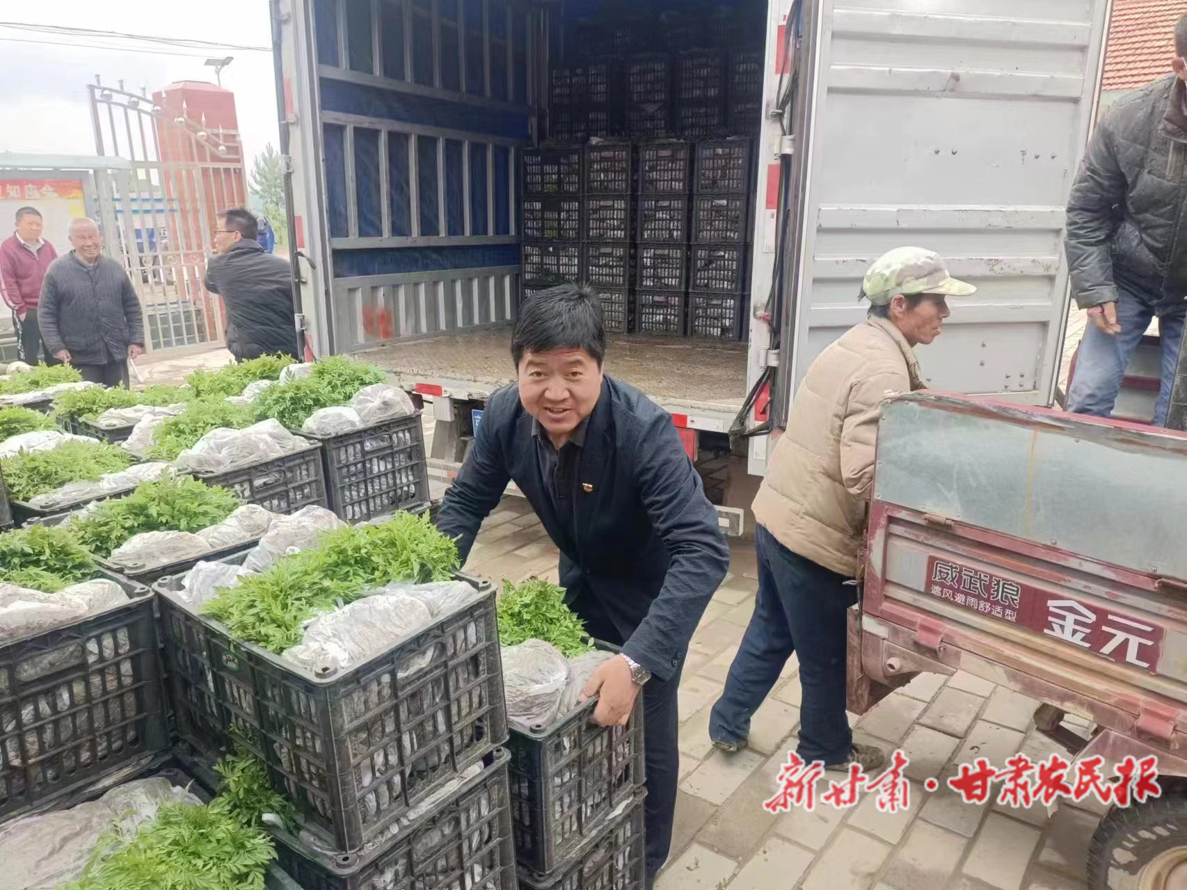 仼廷樓正在幫助村民分發(fā)萬壽菊苗木。新甘肅·甘肅農(nóng)民報(bào)通訊員田曉博 攝