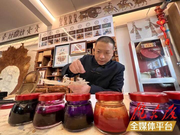 慶陽網訊(記者 南力 趙丹 見習記者 王華)冬日的陽光透過環(huán)州故城道情皮影館的窗欞,將色彩斑斕的皮影投影在了墻壁上。兔年春節(jié)到來之前,環(huán)縣皮影雕刻技藝傳承人張治文創(chuàng)作皮影元素作品,喜迎癸卯兔年的到來。