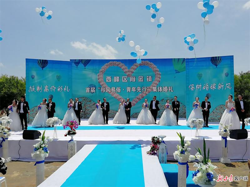 西峰區(qū)肖金鎮(zhèn)舉行“抵制高價(jià)彩禮 倡樹(shù)婚嫁新風(fēng)”集體婚禮。
