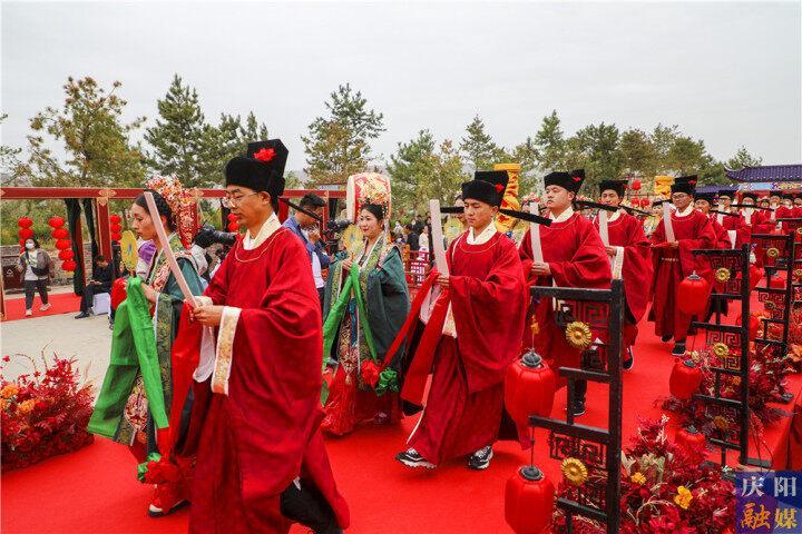 碧草如茵,暖風(fēng)輕拂。5月4日,環(huán)縣環(huán)州故城景福門前,祈福暖堂、整衣簪花,行作揖禮、交巹禮、結(jié)發(fā)禮……一場(chǎng)浪漫又獨(dú)具中華傳統(tǒng)文化特色的宋制集體婚禮在這里舉行。集體婚禮復(fù)刻千年前的婚嫁儀式,12對(duì)新人在眾人見證下完成人生大事,開啟幸福人生。
