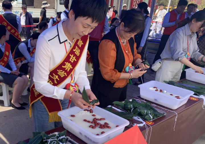 西峰區(qū)第六屆“瑞信銀行杯”新時代文明實踐“包粽達人”大賽暨“愛心西峰 端午公益行”志愿服務活動現(xiàn)場。