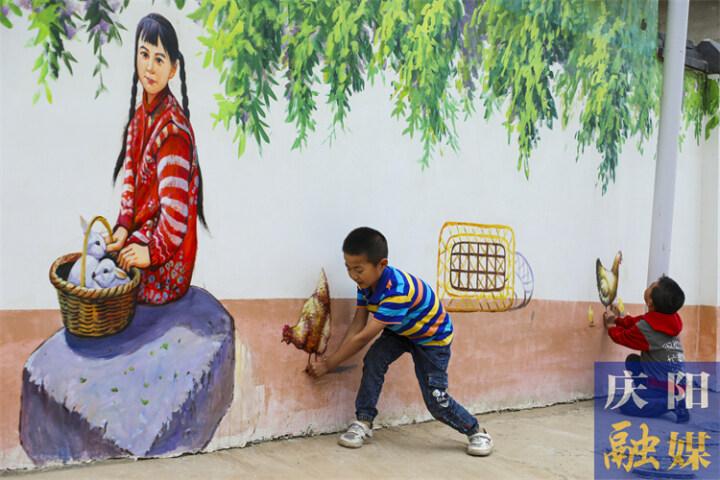 ▲在合水縣老城鎮(zhèn)牧家溝村居民點(diǎn),孩子們在玩耍。