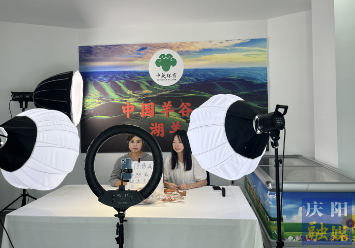 主播在環(huán)縣電商創(chuàng)業(yè)孵化基地直播。