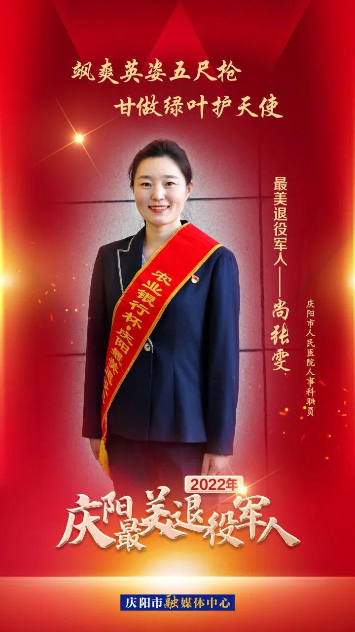 尚張雯,女,1985年11月出生,中共黨員,2002年12月入伍,2005年12月退役,榮獲優(yōu)秀士兵1次、個人嘉獎3次、榮立三等功1次,現(xiàn)為慶陽市人民醫(yī)院人事科職員。