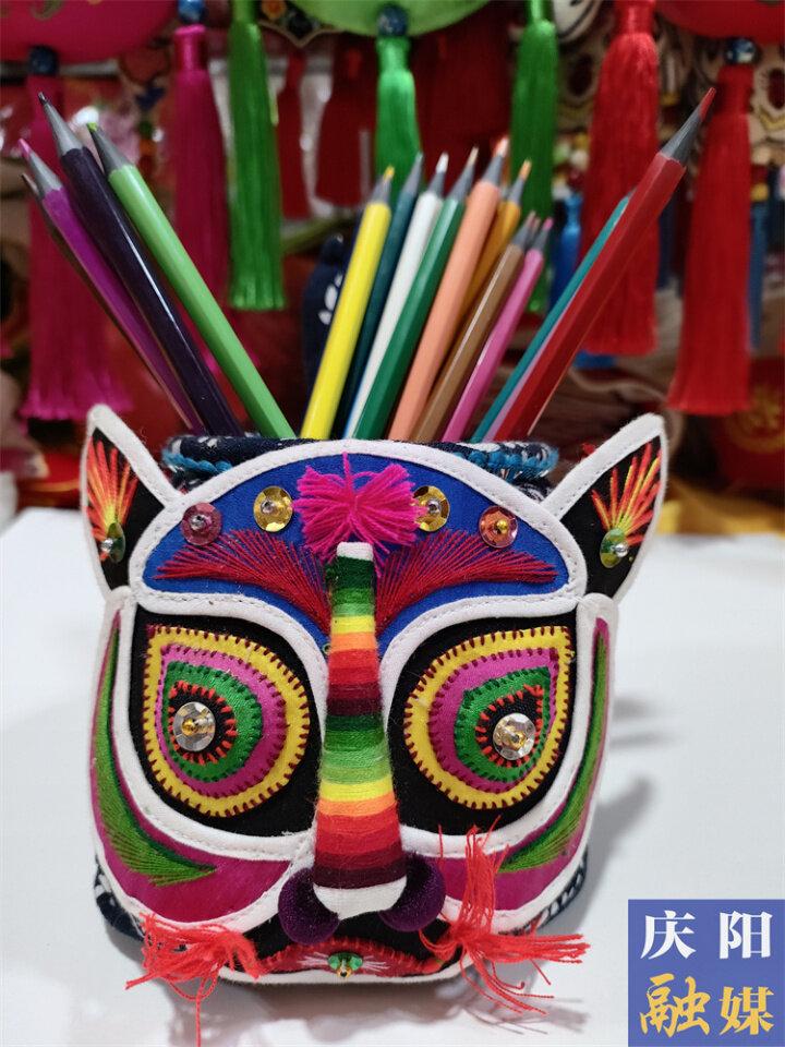 ▲趙麗珺的刺繡作品《祥虎筆筒》