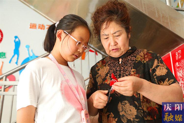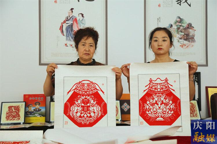 日前,記者走進(jìn)位于西峰區(qū)三里廟花園小區(qū)的吉彩琴工作室,象征祥瑞吉運(yùn)的龍鳳麟龜、鹿蝠鶴鵲、梅蓮桃葫,代表趨吉避兇的抓髻娃娃、疳娃娃、送病娃娃,還有卷軸長(zhǎng)卷、各種剪紙,將不大的空間裝飾得色彩繽紛。今年52歲的吉彩琴忙著給弟媳婦張彥峰教授剪紙技藝,一個(gè)教得認(rèn)真、一個(gè)學(xué)得專心。
