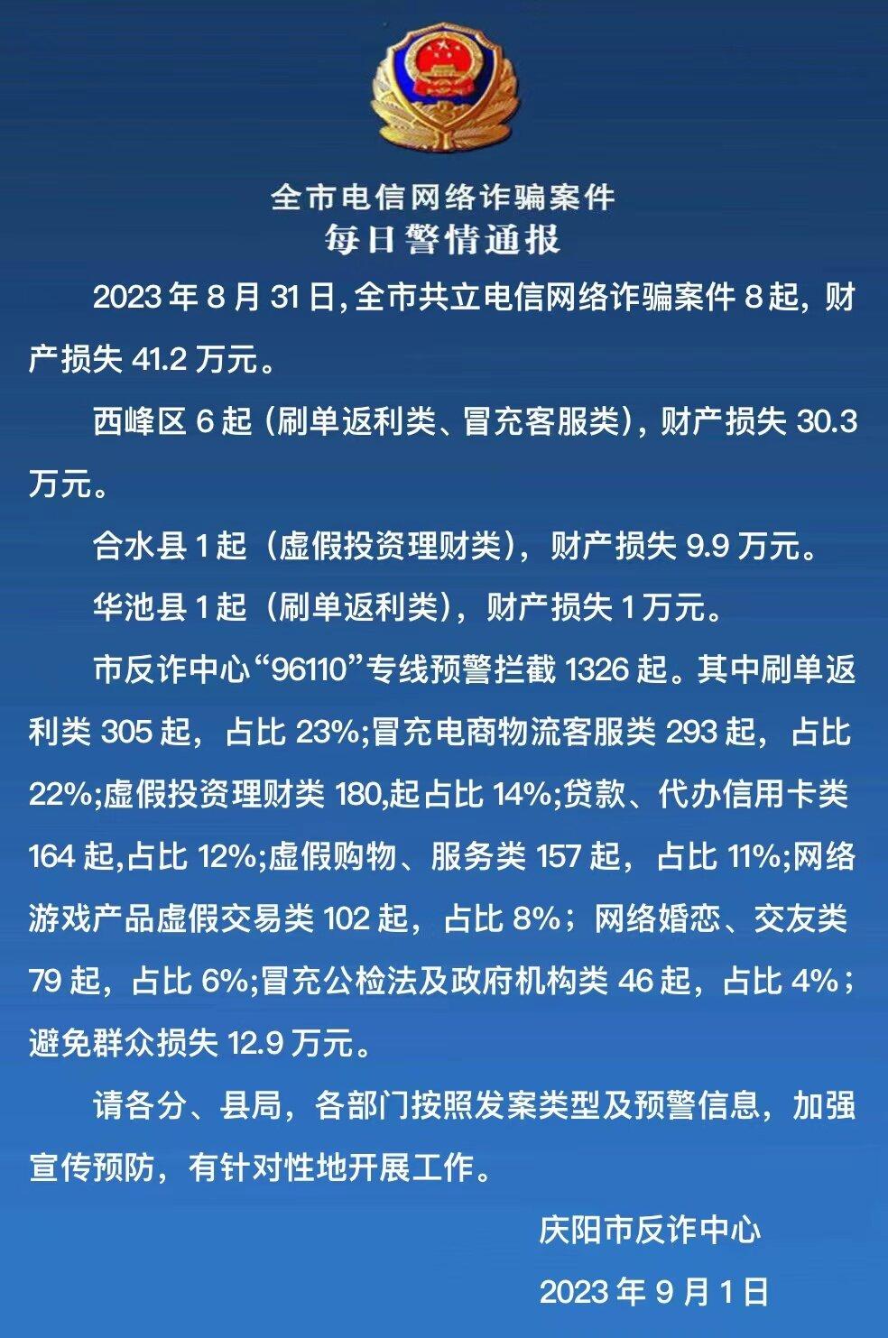 【法治慶陽】立案8起、財產(chǎn)損失41.2萬元!慶陽市發(fā)布8月31日電信網(wǎng)絡詐騙警情通報