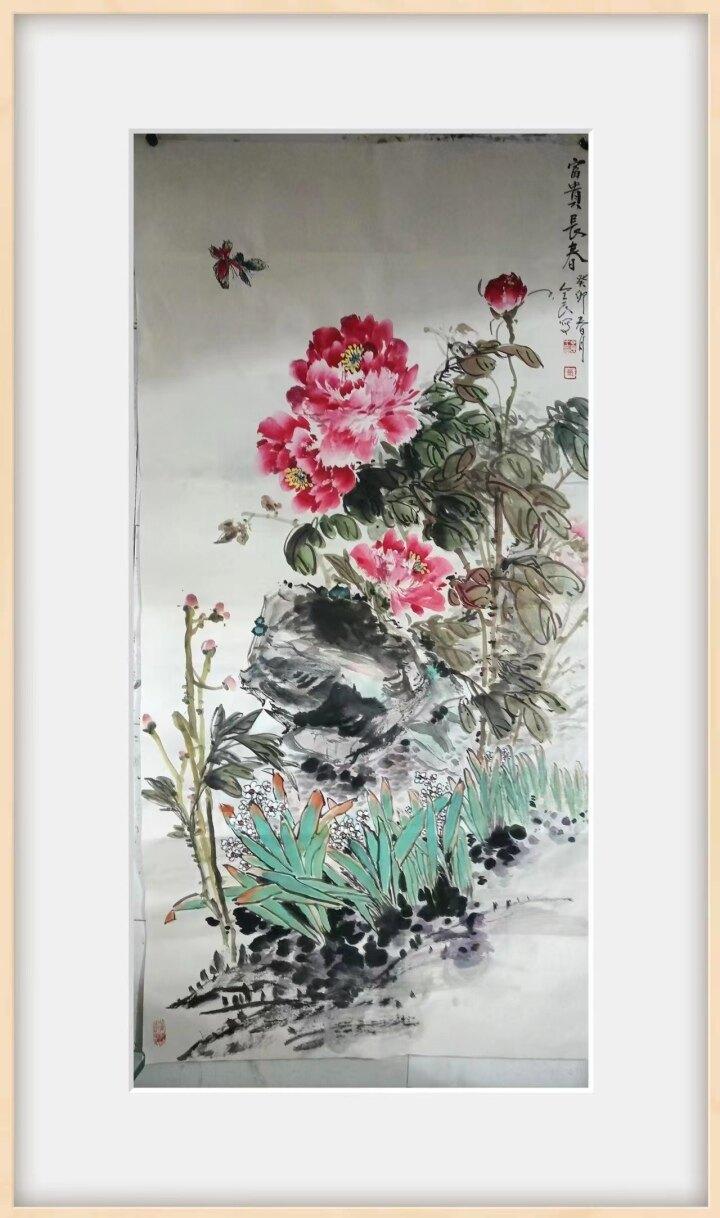 劉全民國畫主攻花鳥,尤其擅畫牡丹。他的牡丹多取法于自然,精煉于寫生。在每年牡丹競放的日子,總是能在周邊的牡丹園見到劉老師寫生的身影,未開的牡丹、即將綻放的牡丹、完全開放的牡丹,凋謝的牡丹、風(fēng)中的牡丹、雨中的牡丹等等都是他寫生必須去研究揣摩的元素,多年來,他憑借著對藝術(shù)的一腔熱忱,不斷探索創(chuàng)新,使牡丹的姿態(tài)與靈魂完美契合,使繪畫的風(fēng)格與鮮明的個性完美契合,他近年來國畫創(chuàng)作的牡丹,枝干柔中帶剛,運(yùn)墨層次分明,運(yùn)色考究、渾厚深沉,給人以視覺上和心靈上優(yōu)雅美的享受。