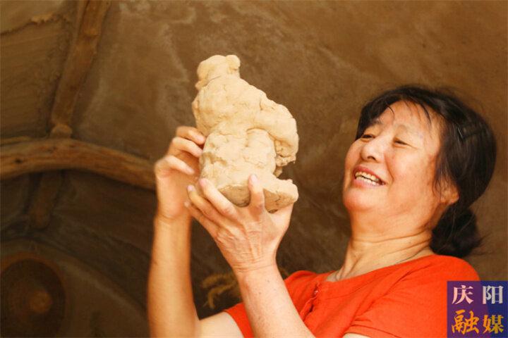 這些年,劉雪玲先后輾轉(zhuǎn)于西峰區(qū)彭原鎮(zhèn)三里溝畎組、董志鎮(zhèn)小河灣組、南佐遺址和鎮(zhèn)原縣小峴村,利用廢棄的窯洞作為創(chuàng)作場地,掏膠泥、捏泥塑。