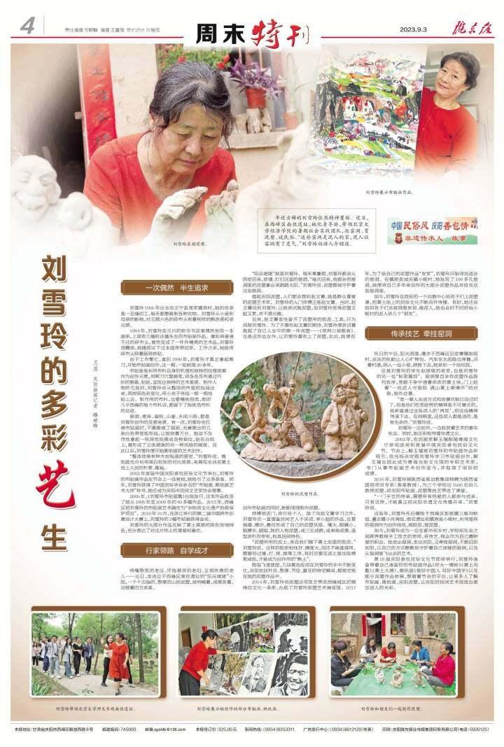 2016年,劉雪玲被陜西省某幼教集團(tuán)特聘為陜西省國培項目專家(客座教授),為三個學(xué)校近1500名幼兒教授泥塑,將慶陽布貼畫、泥塑等技藝帶進(jìn)了課堂。