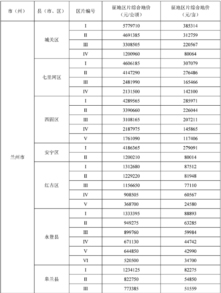 現(xiàn)將《甘肅省征收農(nóng)用地區(qū)片綜合地價標準》予以公布,請認真貫徹落實。2020年8月12日印發(fā)的《甘肅省征收農(nóng)用地區(qū)片綜合地價標準》(甘政發(fā)〔2020〕41號)同時廢止。