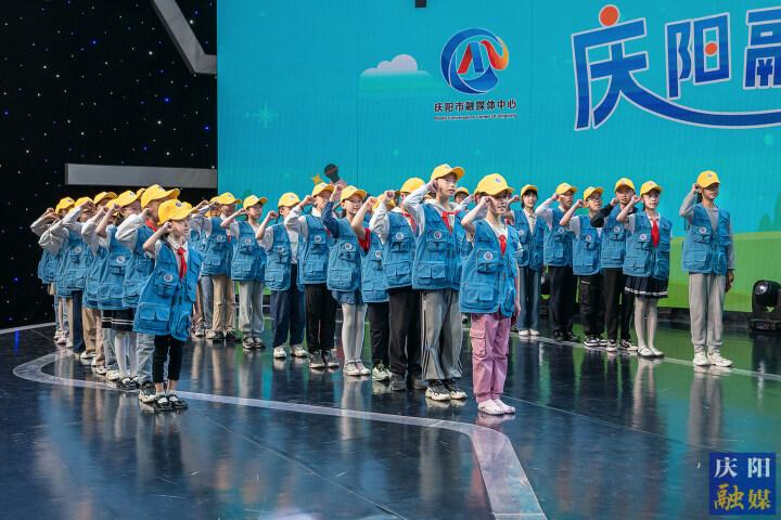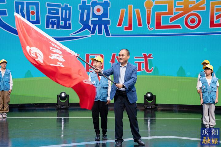 慶陽市融媒體中心黨組書記、主任先朝陽為小記者團(tuán)授旗。