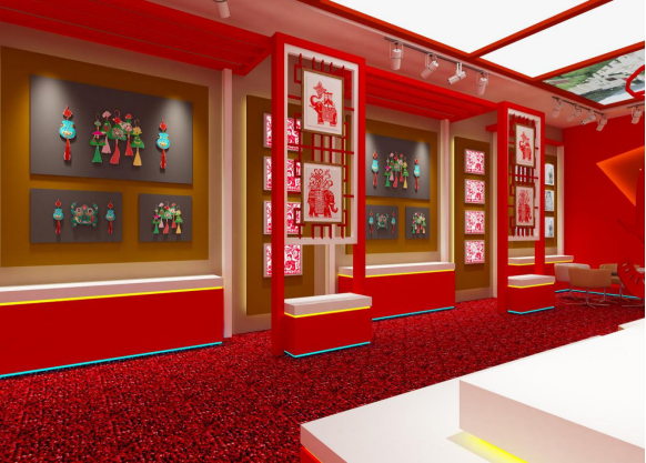 設(shè)置五個(gè)版塊,南梁說唱活態(tài)展示區(qū)、華池剪紙活態(tài)展示區(qū)、華池刺繡活態(tài)展示區(qū)、慶陽民間布貼畫活態(tài)展示區(qū)、民俗文創(chuàng)產(chǎn)品展示推介區(qū)。