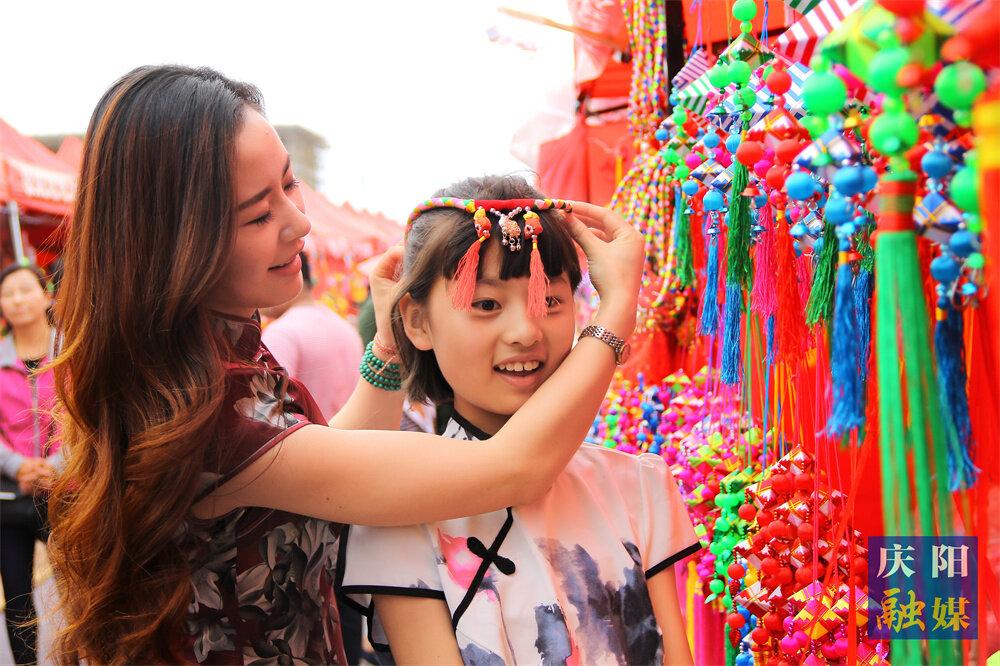 2017年5月29日,市民在第十五屆慶陽端午香包民俗文化節(jié)上選購頭飾。慶陽融媒記者 陳飛 攝