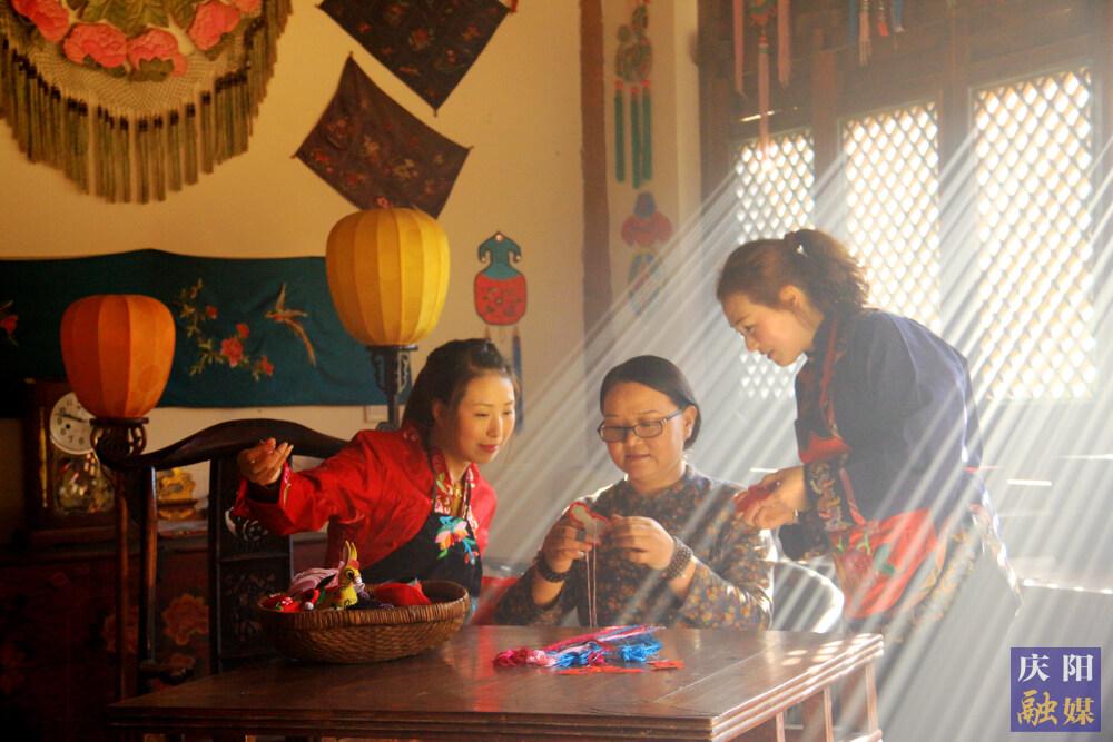 2023年6月10日,西峰區(qū)錦繡坊的繡娘們在制作香包。慶陽融媒記者 陳飛 攝