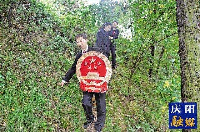 西峰區(qū)人民法院后官寨人民法庭副庭長提海峰懷抱國徽去開庭。慶陽融媒記者 徐雅荷 攝